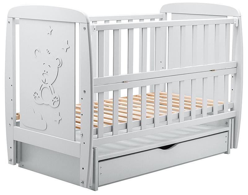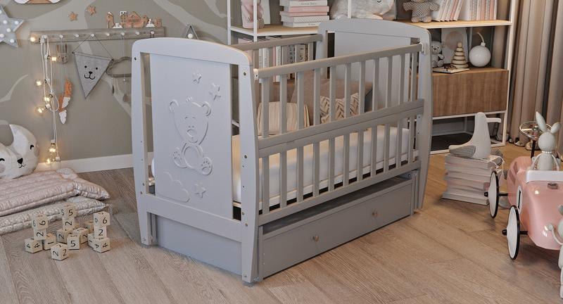Кроватка с очаровательным медвежонком Умка от Babyroom. Она имеет выдвижной