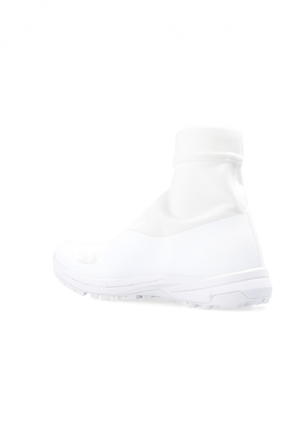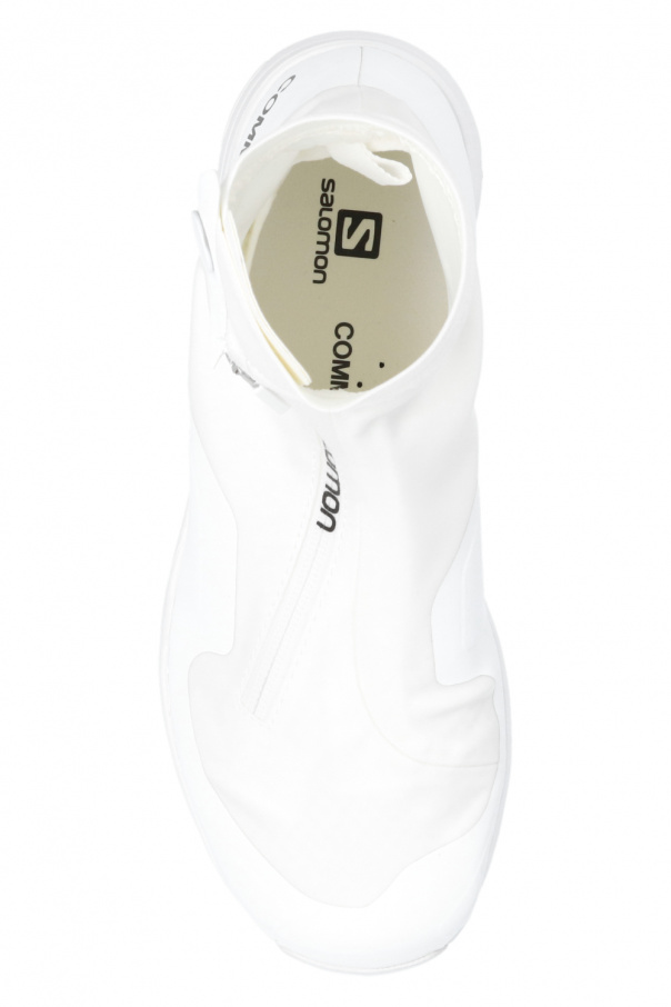 White ‘XA-Alpine’ sneakers from Comme des Garçons x Salomon. Fastened with snaps and zip with a logo, this pair features a black logo on the side and black Contagrip® sole made of durable high wear abrasion resistant rubber, which provides excellent grip and durability on all types of mountainous terrain.