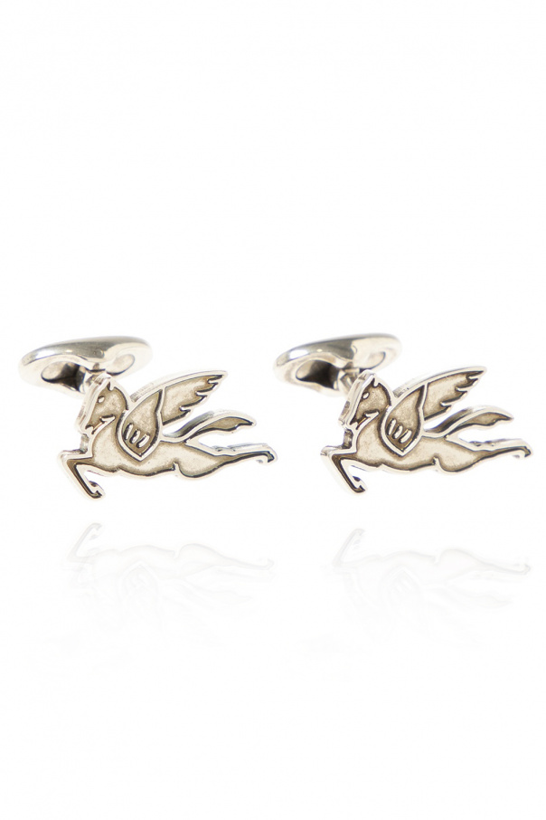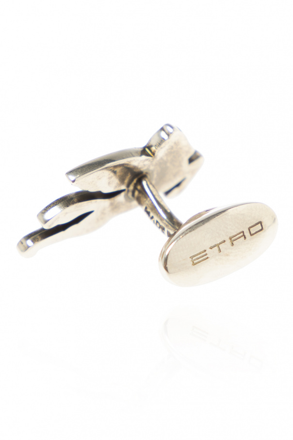 Silver-tone cufflinks from Etro. Made of brass. Decorated with a logo pattern.