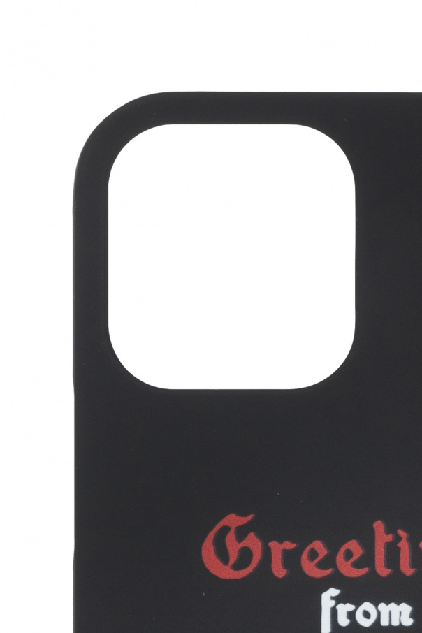 Black iPhone 12/12Pro case from Palm Angels. Designed to guard your smartphone, this item showcases a red graphic print with an anthozoa motif and the brand\'s logo in red and white.