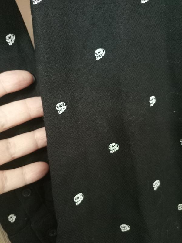 Класна сорочка на маленького модника! Бавовна, чорний колір, маленькі білі цяточки у вигляді черепушки. Дуже круто виглядає)