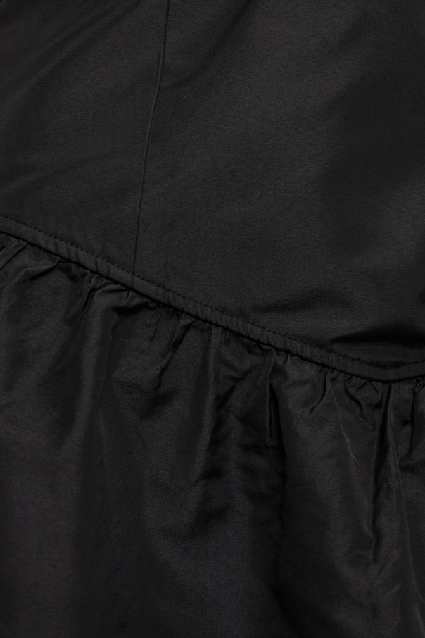 Black dress from Ganni. Crafted from recycled materials, this design features a concealed side zip, buckle strap at the back, low waistline and double shoulder straps.