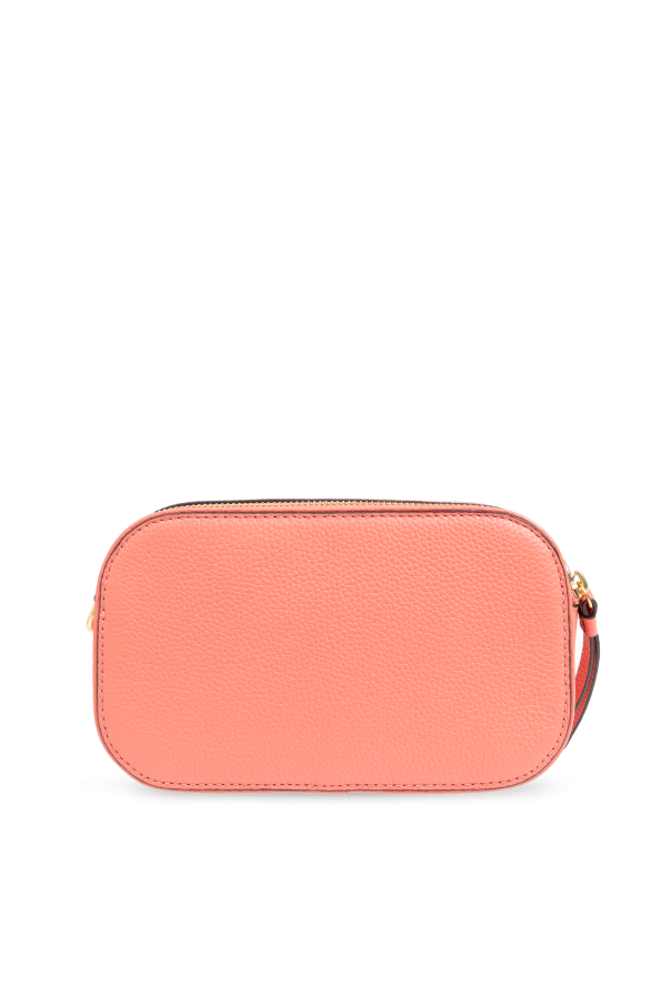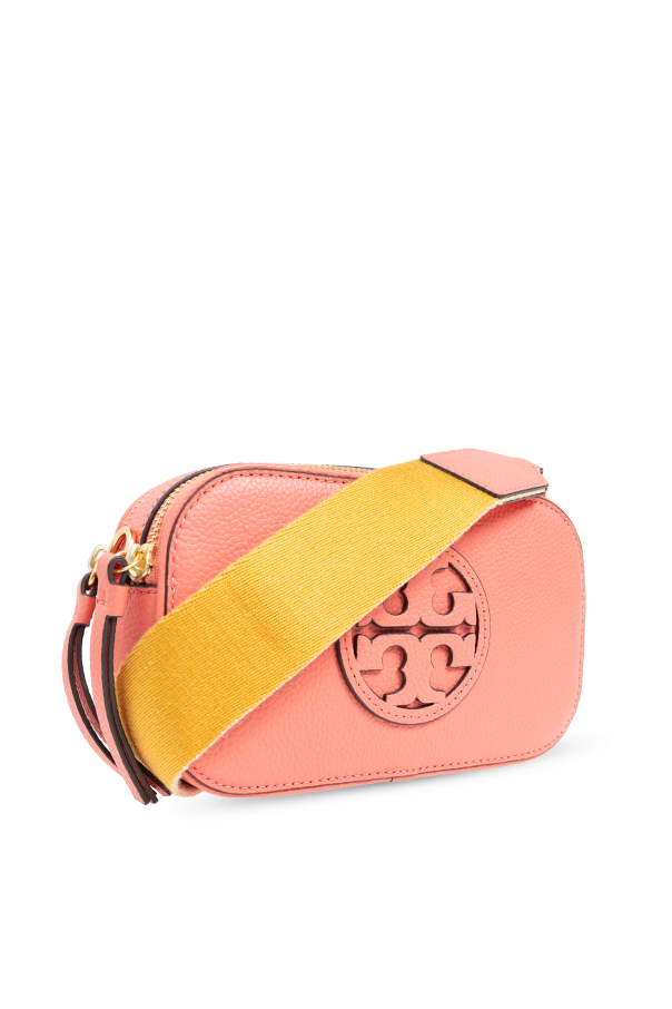 Introducing the \'Miller Mini\' shoulder bag by Tory Burch, a masterpiece of elegance and functionality that blends modern design with timeless craftsmanship. This exquisite piece is crafted from high-quality leather, showcasing a smooth, unified texture in a delicate pastel pink hue that exemplifies sophistication. The bag features an oval shape with gently rounded edges, presenting a sleek and minimalist exterior. A striking feature is the large, round logo cut-out of the same premium leather, set against a contrasting vibrant yellow background on the bag’s strap, adding a dash of boldness to its overall aesthetic. The strap, adorned with golden metallic clasps, offers adjustable length for versatile styling and comfort. The back of the bag maintains a smooth and unadorned finish, emphasizing its minimalist design. The presence of a golden zip closure hints at the bag’s practicality, revealing a contrasting interior that boasts two separate compartments, including one with a slip pocket, ensuring your essentials are organized and secure. Why Purchase This Product? Elegant design that combines modern aesthetics with traditional craftsmanship. High-quality leather construction ensures durability and a luxurious feel. Unique contrasting colors and textures add a contemporary edge. Adjustable and detachable strap with golden clasps enhances the bag’s versatility and style. Functional interior with two compartments, including a slip pocket, for organized storage.