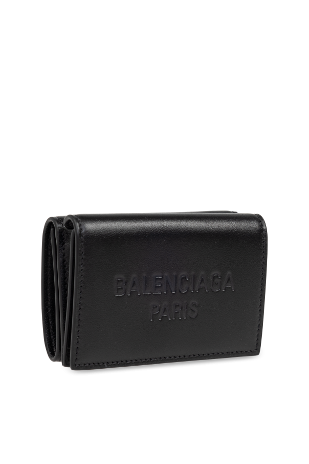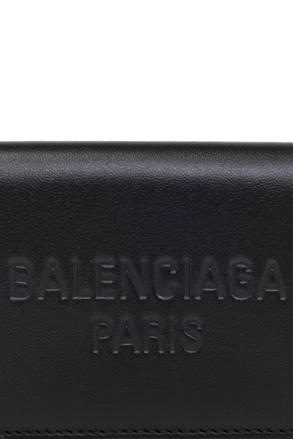 Introducing the quintessence of sophistication and minimalist design, the Balenciaga Paris Leather Wallet. Crafted from the finest smooth leather, this wallet epitomizes elegant aesthetics combined with functional finesse. Its sleek, flat construction and rectangular shape with gently rounded corners offer a contemporary silhouette, while the unadulterated black hue ensures versatility and timeless appeal. The wallet\'s front is adorned with the subtly embossed “BALENCIAGA PARIS” logo, a testament to its esteemed lineage and an emblem of luxury without the need for overt embellishment. This feature alone makes the wallet a statement piece of understated elegance. The closure is secured with a discreet, color-matched metal snap, maintaining the wallet\'s sleek profile and minimalist vibe. Upon unveiling its interior, the wallet reveals a smooth lining and additional embossing indicative of its authenticity and heritage. Though its internal organizational features are not visible, it includes a billfold pocket and three slip pockets for essentials, alongside a coin pocket with a snap closure, ensuring both functionality and sleek design. Why Purchase This Product? Exquisite craftsmanship from 100% genuine leather for durability and elegance. Signature Balenciaga embossment offers an exclusive touch of designer prestige. Minimalist design with practical organization including a billfold, slip pockets, and a secure coin pocket. Universal appeal with its classic black color, suitable for various styles and occasions.