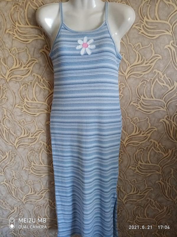 Літній довгий сарафанчик, стан б/у дуже гарний, місткість панчох ніби ковтунців, сувойних матерії, з одного боку розріз, етикеток немає,тканина швидше за все котон, допоможе трохи поліестеру,тягується, розмір має приблизний,орієнтуйтеся за вимірами: