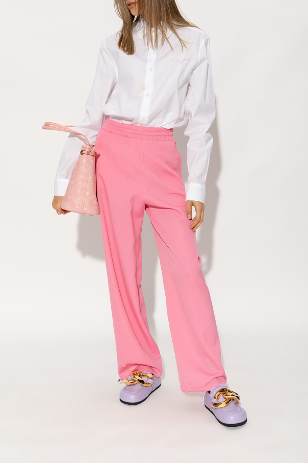 Purple shoes from JW Anderson. Made of leather, this pair features a decorative insert with a chain, fur trims and black rubber sole.