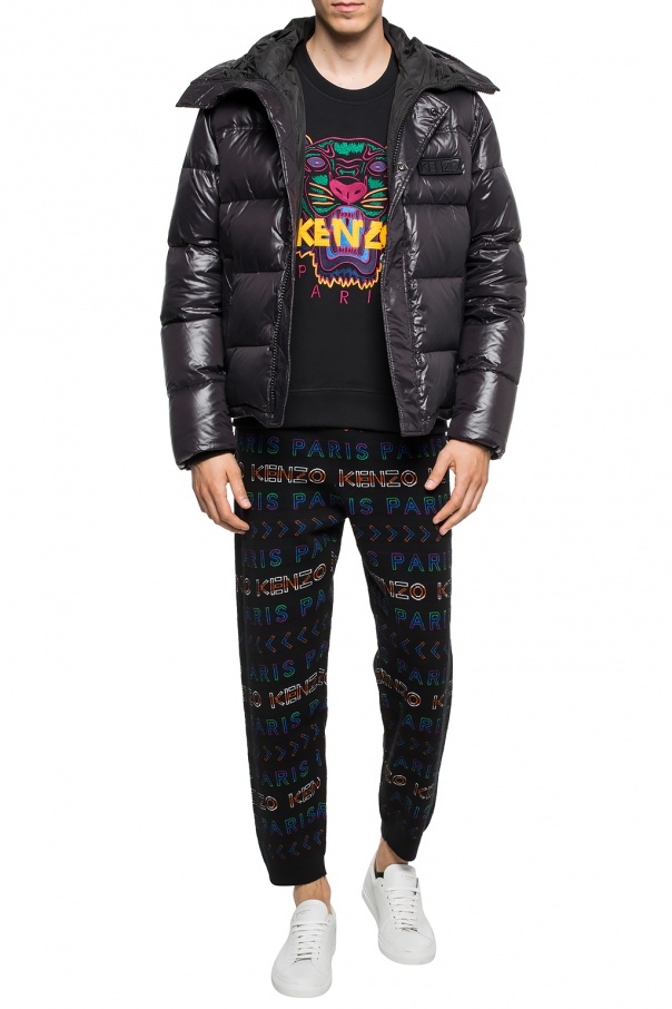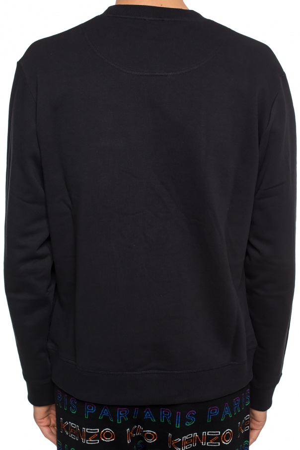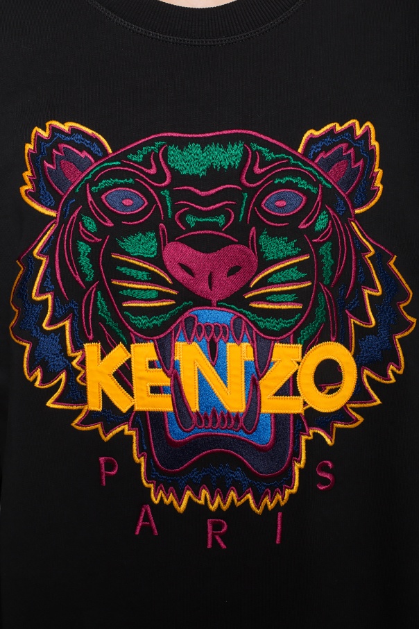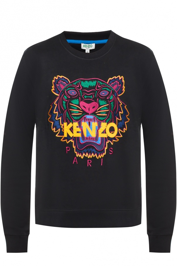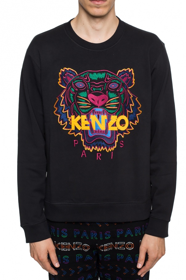 Black sweatshirt from Kenzo. Made of cotton. Front decorated with a colorful embroidered tiger head motif and a logo. Round neck. Long sleeves. Elasticized bottom hem and cuffs.