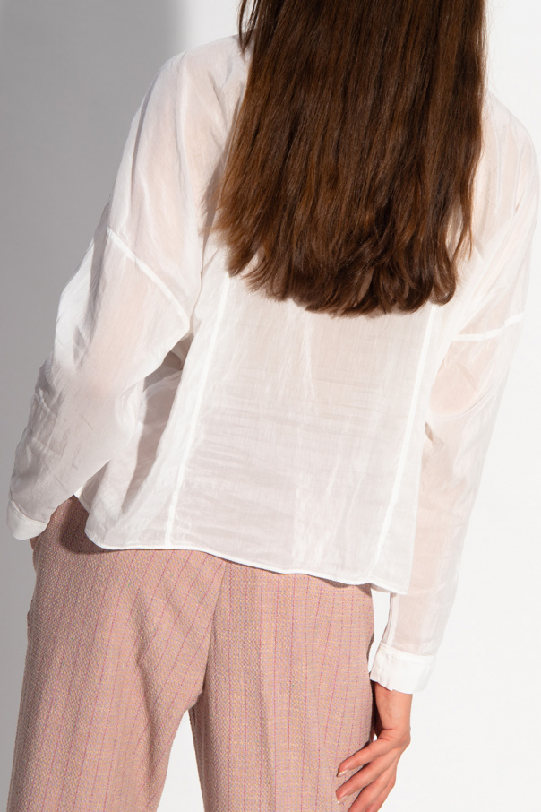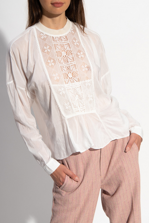 White top with long sleeves from Forte Forte. Crafted from a cotton and silk blend, this design features button fastenings, a lace insert and a ribbed round neck.