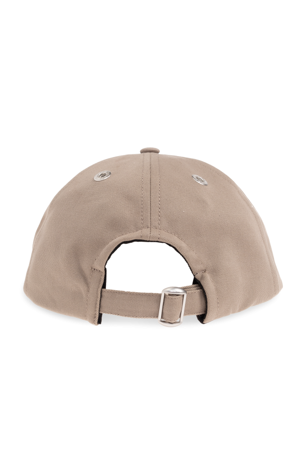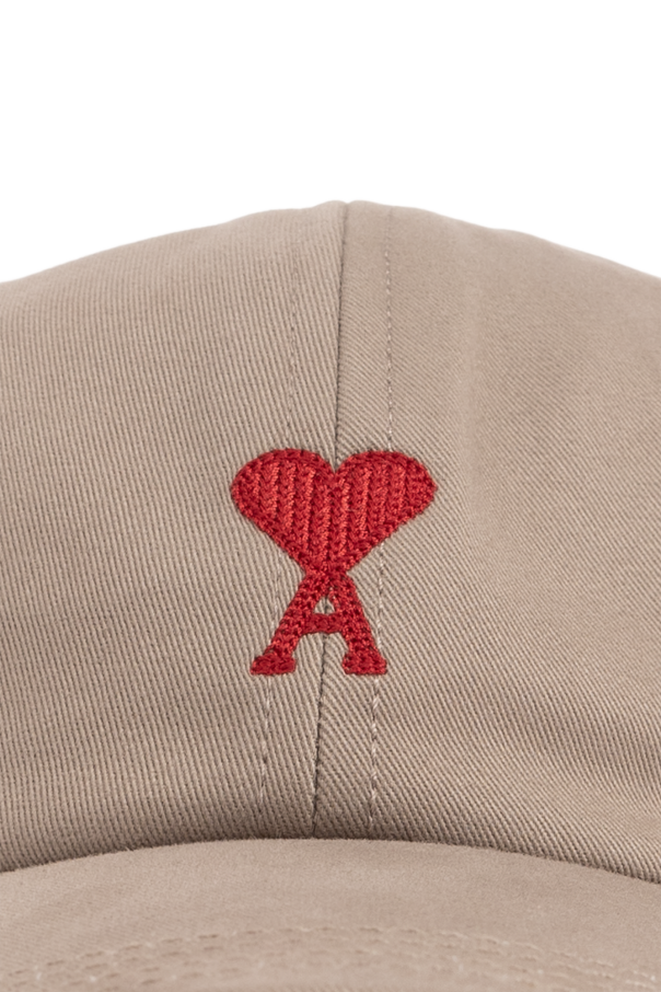 Greyish beige denim baseball cap from Ami Alexandre Mattiussi. Fastened with an adjustable buckle strap at the back, this item is decorated with a red Ami de Coeur logo embroidery.