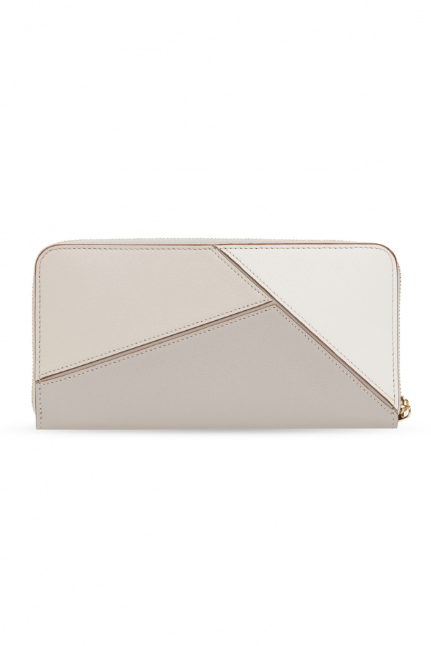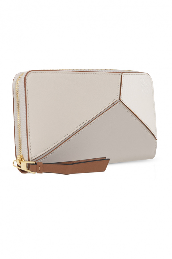 Grey and white wallet from Loewe. Made of calf leather, this item features a zip fastening, embossed logo and gold-tone metal hardware. It has two internal compartments, eight card slots, two slip pockets and one zip pocket.