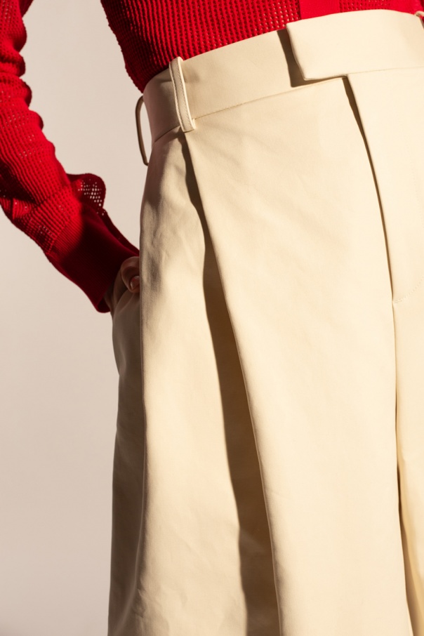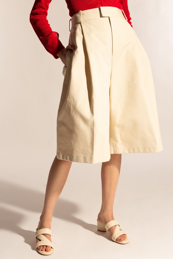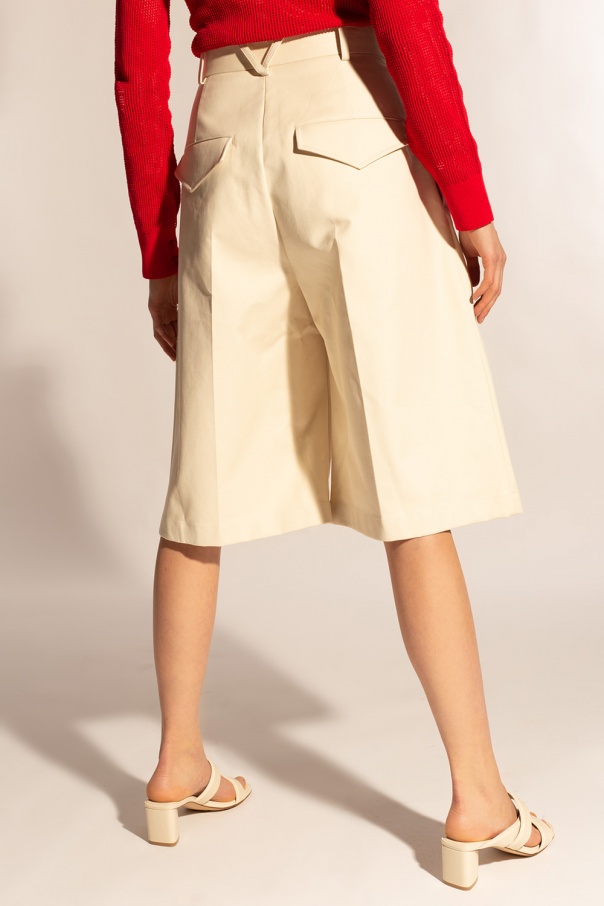 Cream shorts from Bottega Veneta. Cut from cotton with straight legs, this pair features a zip fly, hook and button fastenings, two side seam pockets and two back flapped pockets.