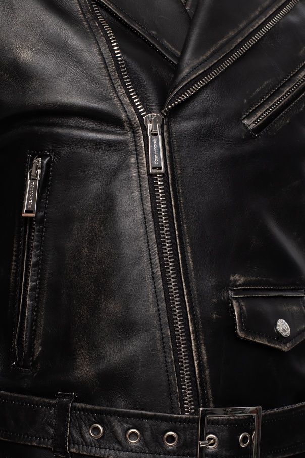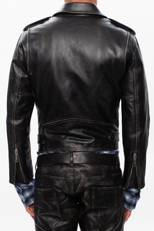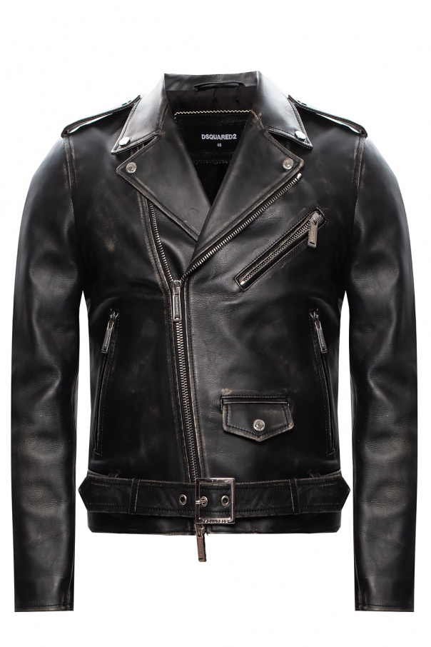 Black jacket from Dsquared2. Crafted from calf leather, this garment features a two-way zip, three zip pockets, one flap pocket with a snap, epaulettes on the shoulders and a buckle strap at the waist.