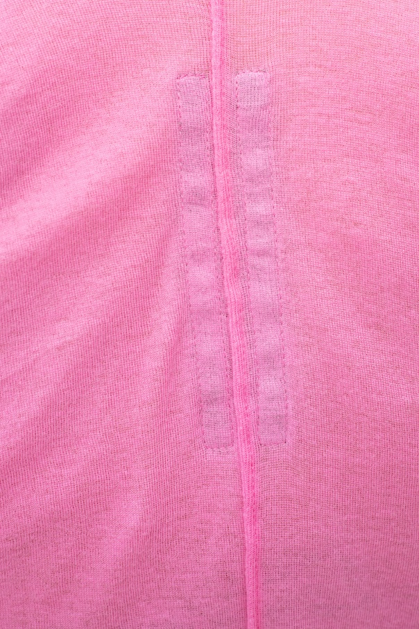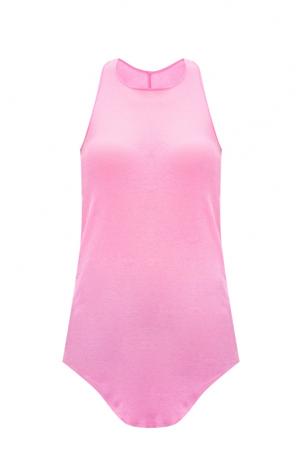 Pink sleeveless crewneck top with a raw cut edge from Rick Owens.