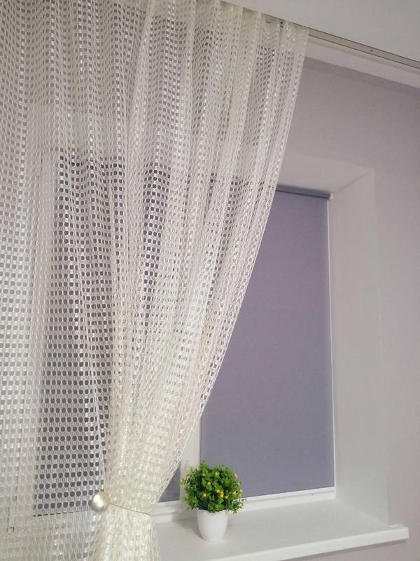 Ткань имеет структуру сетки. Она хорошо декорирует окно, но плохо защищает от