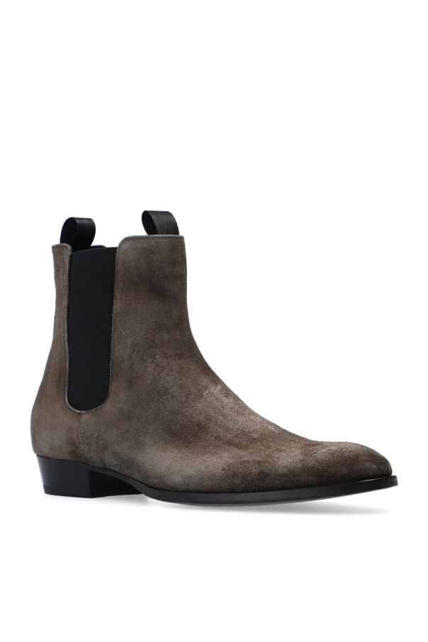 Dark grey ankle boots from Giuseppe Zanotti. Crafted from suede, this pair features elastic side panels and a black leather sole.