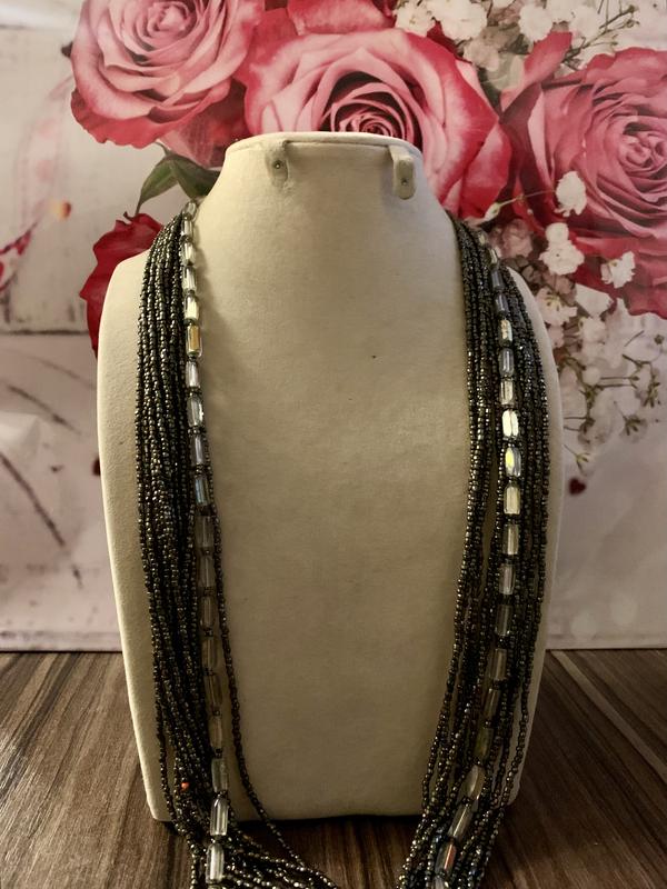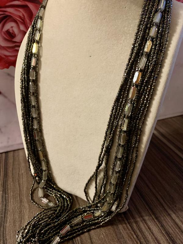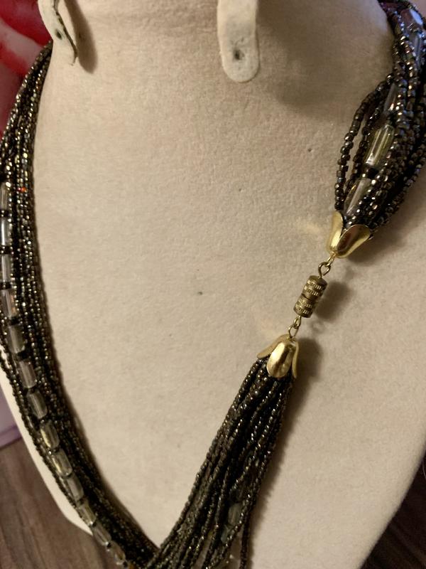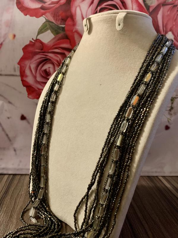 Многорядное винтажное пышное длинное бисерное ожерелье из «бензинового» бисера темно-шоколадного цвета🤩🌸 старая Чехосфера 🌺