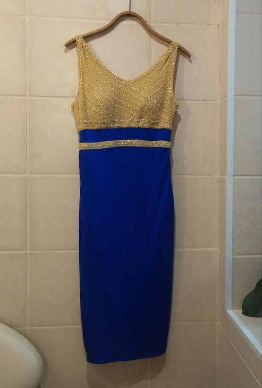 Тканина синя, приємна на дотик, середньої щільності, гарно ,,сяде по фігуре,, і дуже добре тягнется, навіть трошки переливається