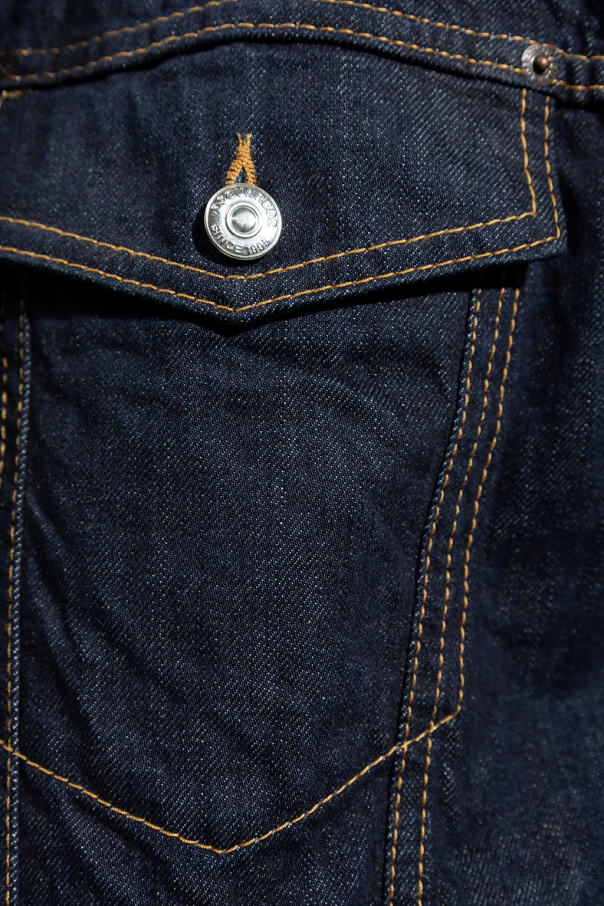 Navy blue denim jacket from Dsquared2. Made from cotton, this style features a zip fastening, two slip pockets, two flapped pockets, long sleeves, fur trims and a drawcord-adjustable hem.