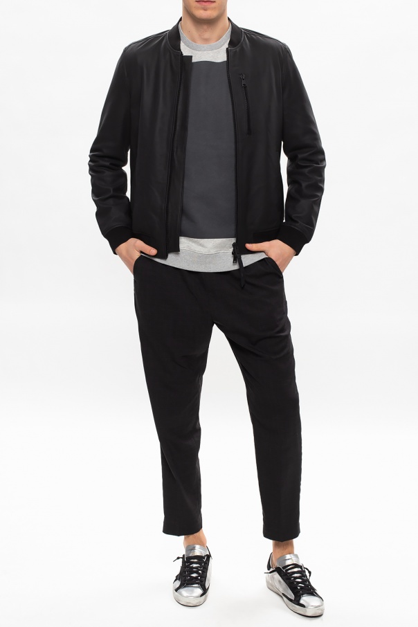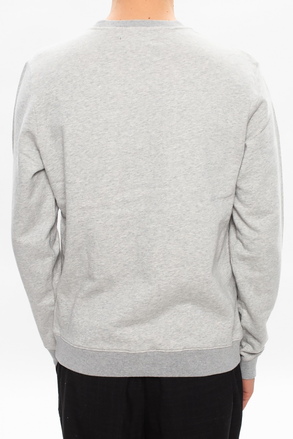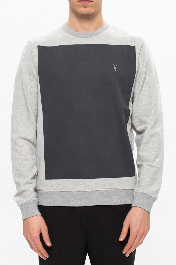 Grey \'Lobke\' crewneck sweatshirt from AllSaints. Embroidered with the brand\'s iconic Ramskull logo on the chest, this cotton-crafted style is complete with ribbed trims.