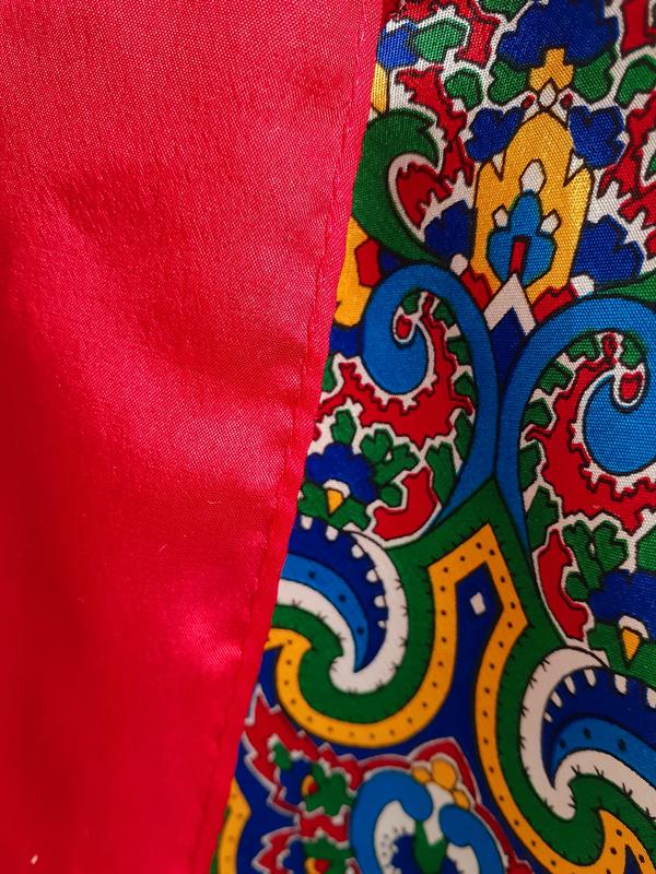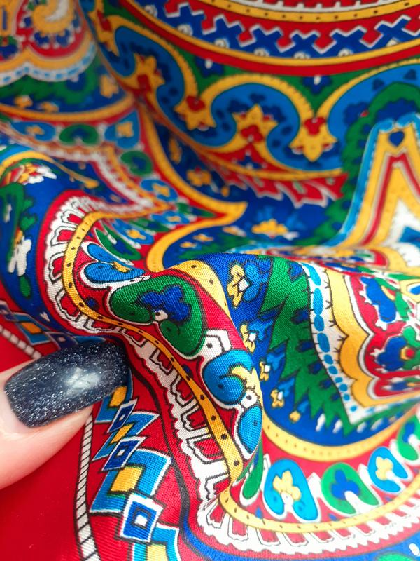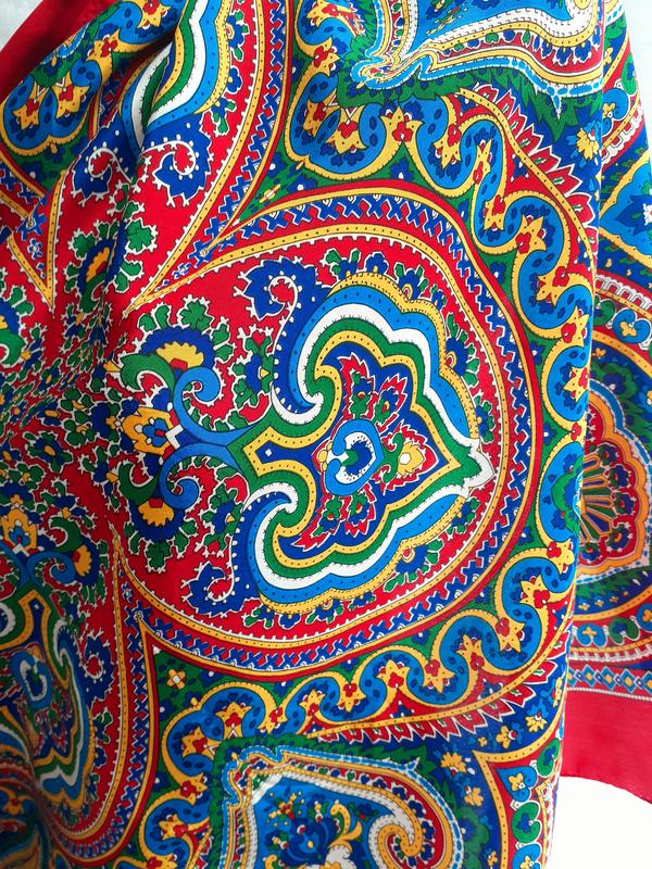 Выполнен из 100% натурального шелка с оригинальным восточным принтом пейсли, занимающего особое место среди большого разнообразия в модной среде! Край обработан вручную.