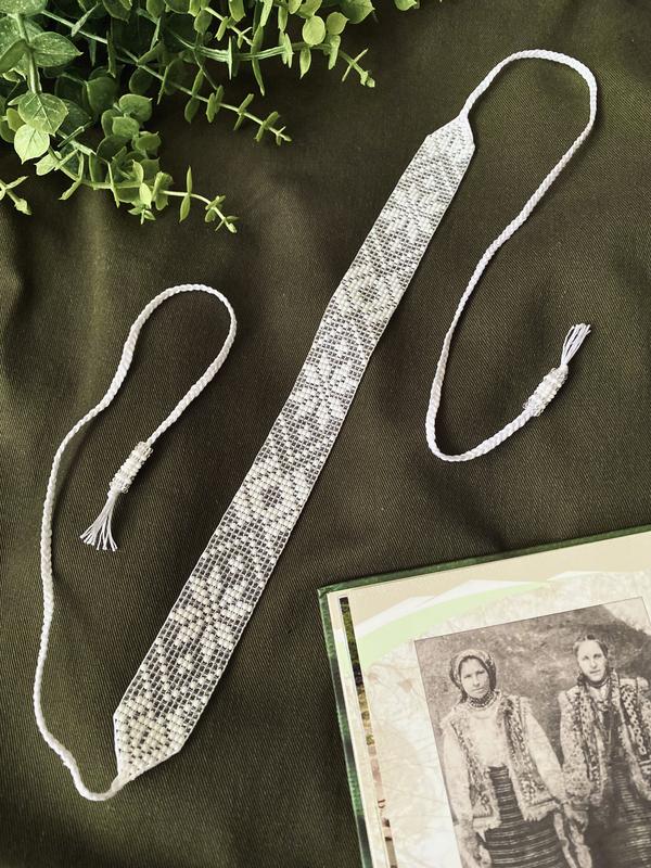 Очень нежный гердан, напоминает кружево. С кисточками на концах завязок, так что можно надевать и бантиком спереди, будет очень красиво.