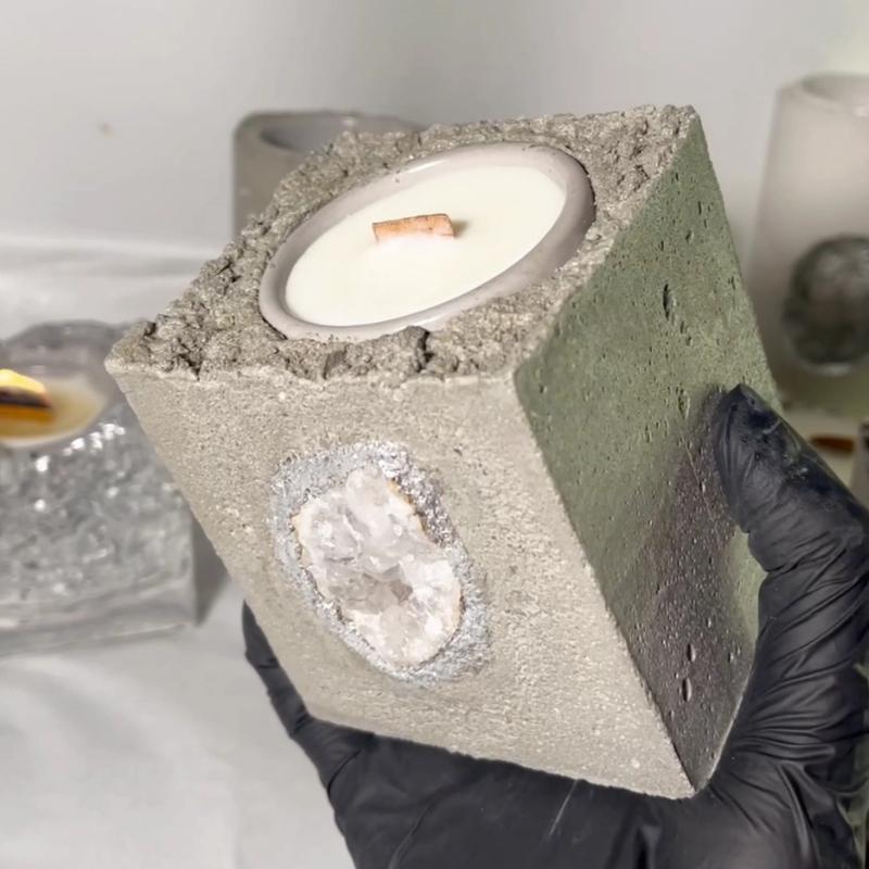 Бетонный подсвечник из бетона с камнями редкая ЖЭОДА КВАРЦУСостояние: НовоеЦвет:- Серый