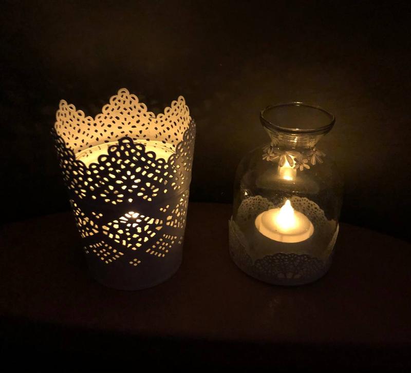Два подсвечника с элементами резьбового металла и стекла, белого цвета. Нежные предметы будут отлично смотреться в разник уголках вашего дома. Металлический стакан дополнительно оснащен стеклянным подсвечником, для удобства использования парафиновых свечей. Предлагаю различные свечи, которые добавляю в комплект - две чайные парафиновые свечи и две чайные электрические свечи с батарейками CR2032.