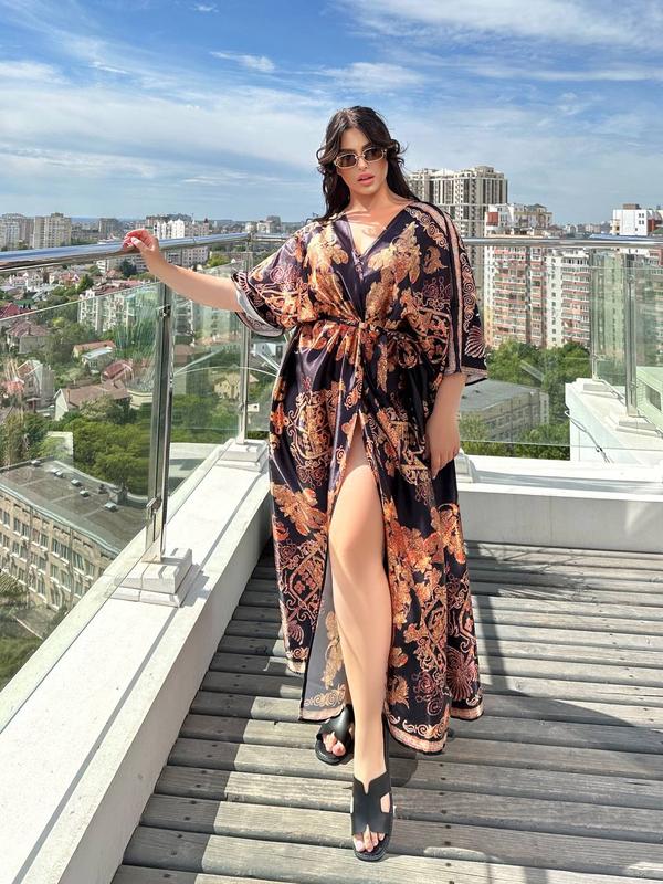 Размер универсальный за счет кроя, подходит на размеры L-6XL! Длина 136 см; объем груди и бедер 98-122 см!