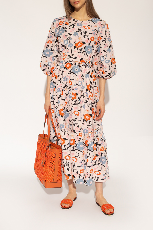 Orange ‘Minea’ slides from Jimmy Choo. Sitting on a beige and black sole in leather and rubber, this model features a woven wide strap with a leather trim. Due to this feature combined with a metallic insole, it blends understated elegance with a laid-back approach.