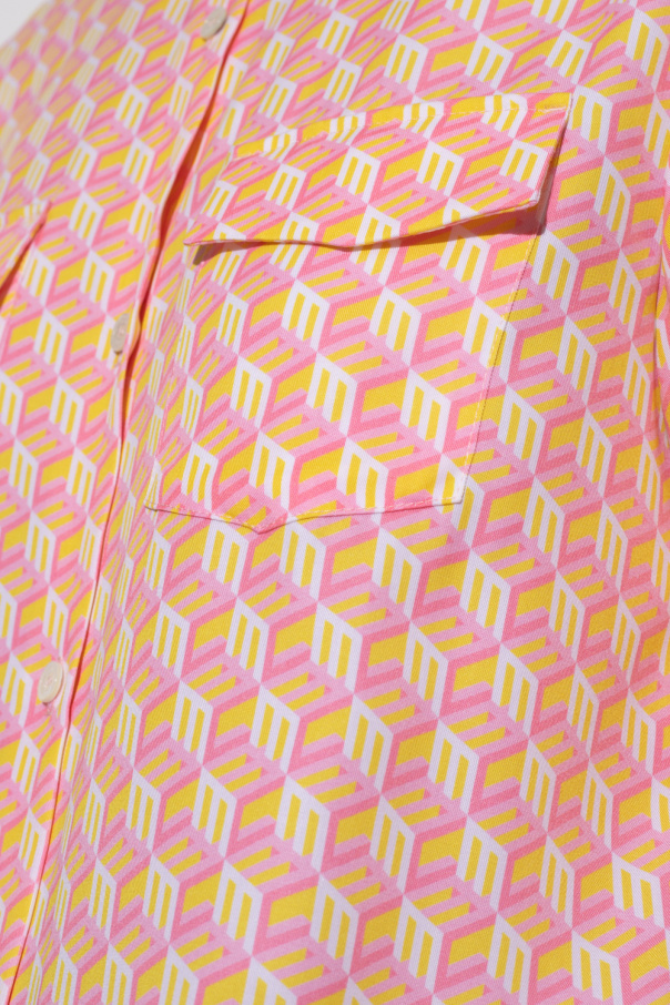 Multicoloured shirt with a collar from MCM. Embellished with the brand\'s signature \'Cubic Monogram\' pattern, this style features button fastenings, two flapped pockets and long sleeves with button cuffs.