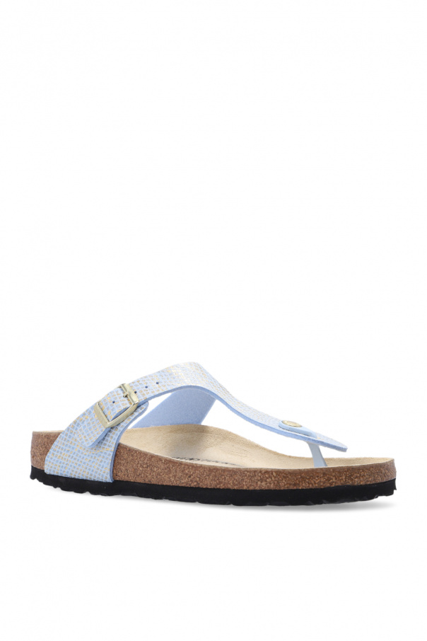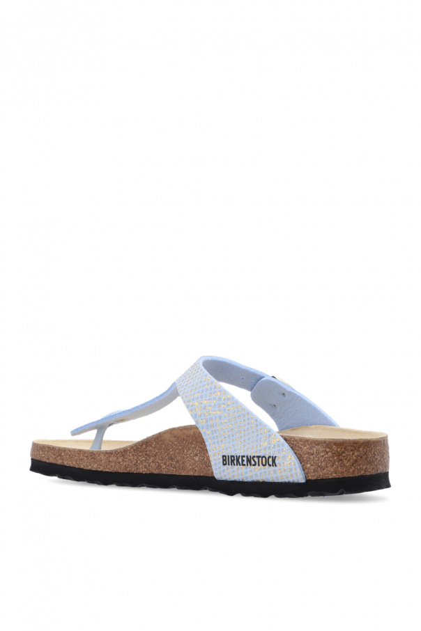 Light blue and gold-tone ‘Gizeh BS’ slides from Birkenstock. Made of microfibre, this pair features an animal pattern, adjustable strap with a branded buckle as well as a black and brown sole made of cork and EVA foam.