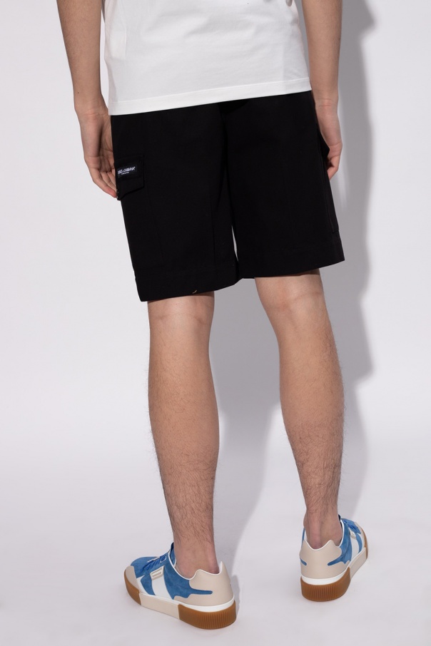 Black shorts from Dolce & Gabbana. Crafted from cotton, this pair employs a zip fly and a single button closure and several pockets for added utility.