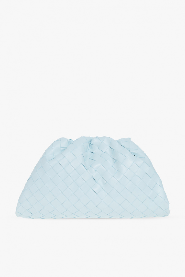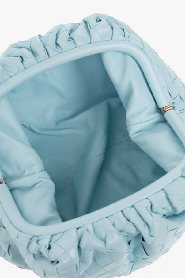 Light blue ‘Pouch Teen’ handbag from Bottega Veneta. Made of lamb leather, this model features a magnetic snap, the iconic Intrecciato weave and one internal compartment.