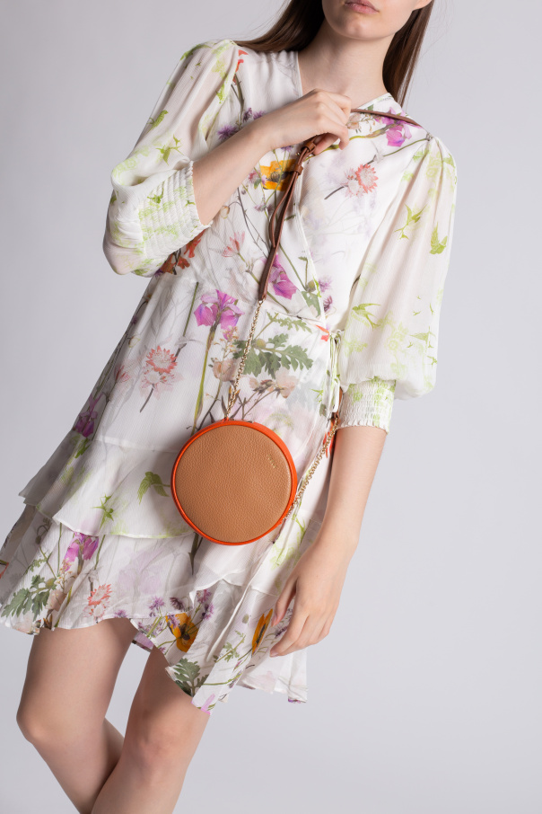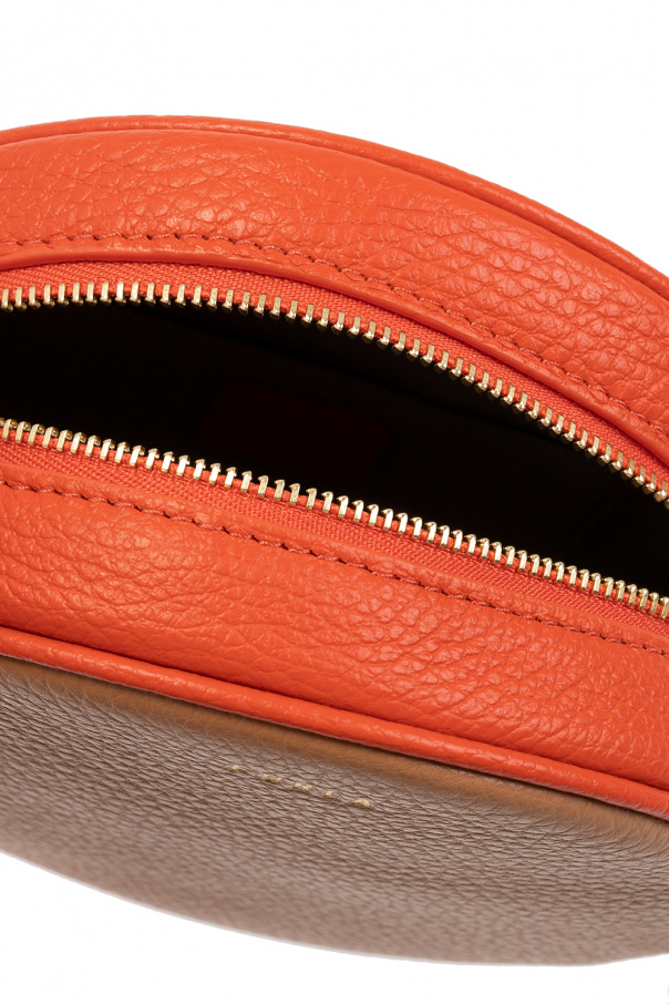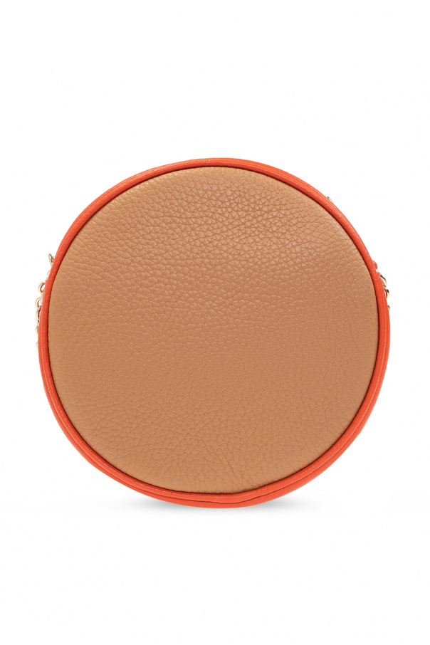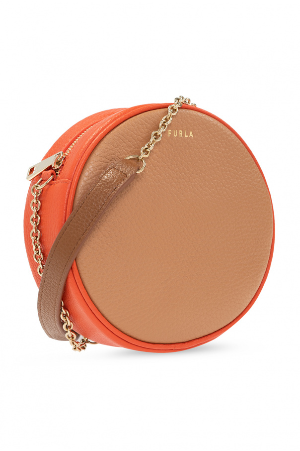 Orange and beige ‘Real’ shoulder bag from Furla. Made of leather, this design fastens with a zip and is decorated with a metal logo. It is complete with an adjustable beige strap with a chain, gold-tone metal hardware and one internal compartment with three card slots.