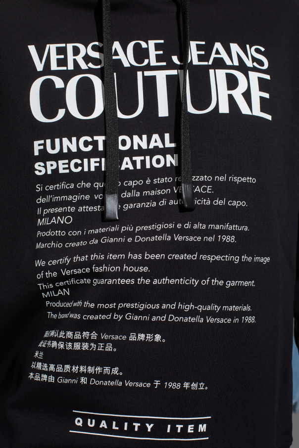 Black sweatshirt with a drawcord-adjustable hood from Versace Jeans Couture. Crafted from cotton jersey, this style features a white graphic print with the brand\'s logo on the front and ribbed trims on the bottom hem and cuffs.