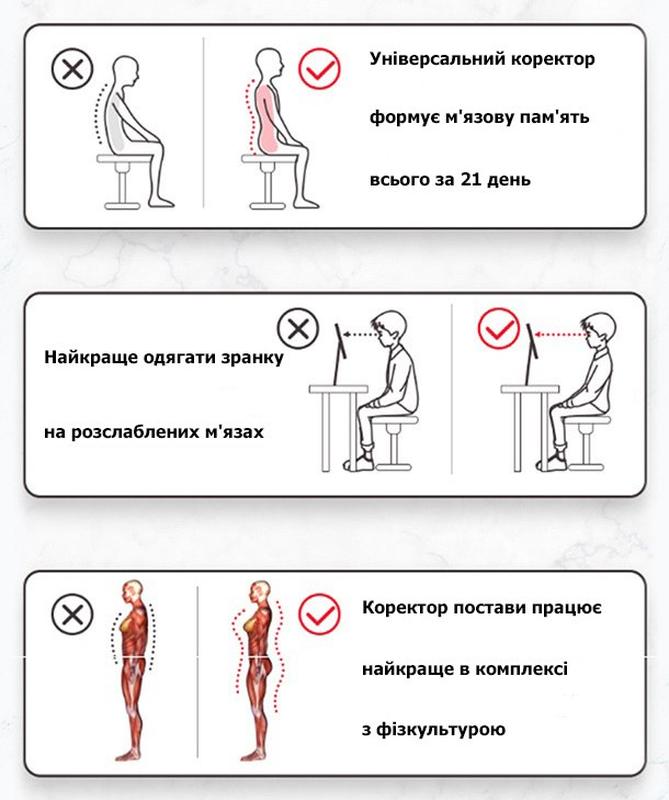 🚫 Не панацея: Корректор осанки работает лучше всего в комплексе с физкультурой и укреплением мышц спины. Не предназначен для активных движений или спортивных занятий.