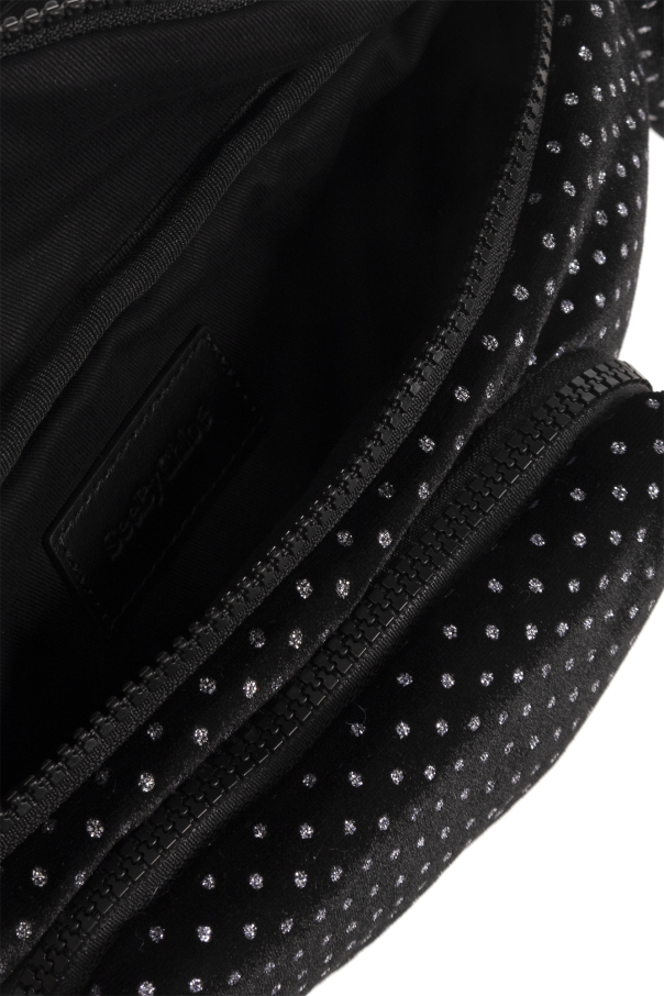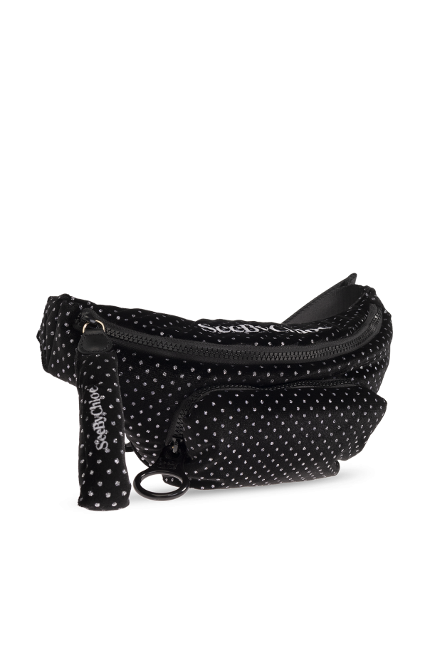 Black ‘Joy Rider’ belt bag from See by Chloé. Made of velvet fabric, this model features a zip fastening with a charm, polka dots with a silver-tone glitter finish, white logo embroidery, zipped front pocket with a round charm, black adjustable strap and one internal compartment. We recommend that you take special care with white or light-colored fabrics to avoid staining.