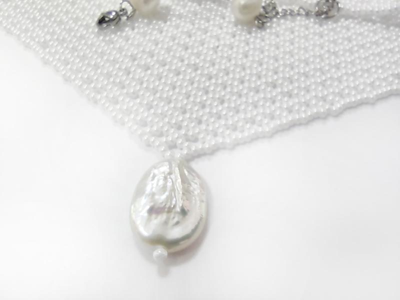 Подвеска и боковые бусины из барочного жемчуга (натуральный жемчуг неправильной формы с наплывом перламутра).