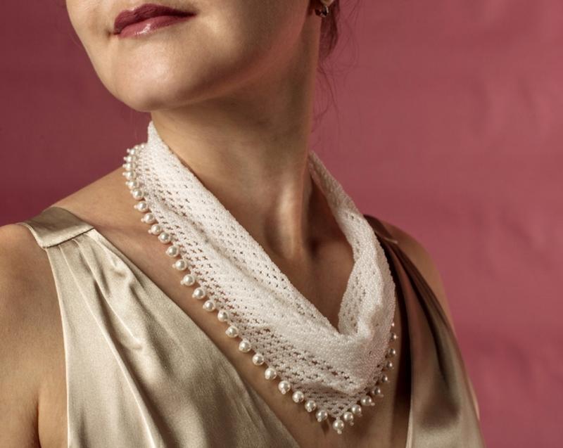 ✔ колье-косынка идеальный вариант для жаркой погоды, так как бисерная ткань пропускает воздух и всегда прохладна на ощупь.