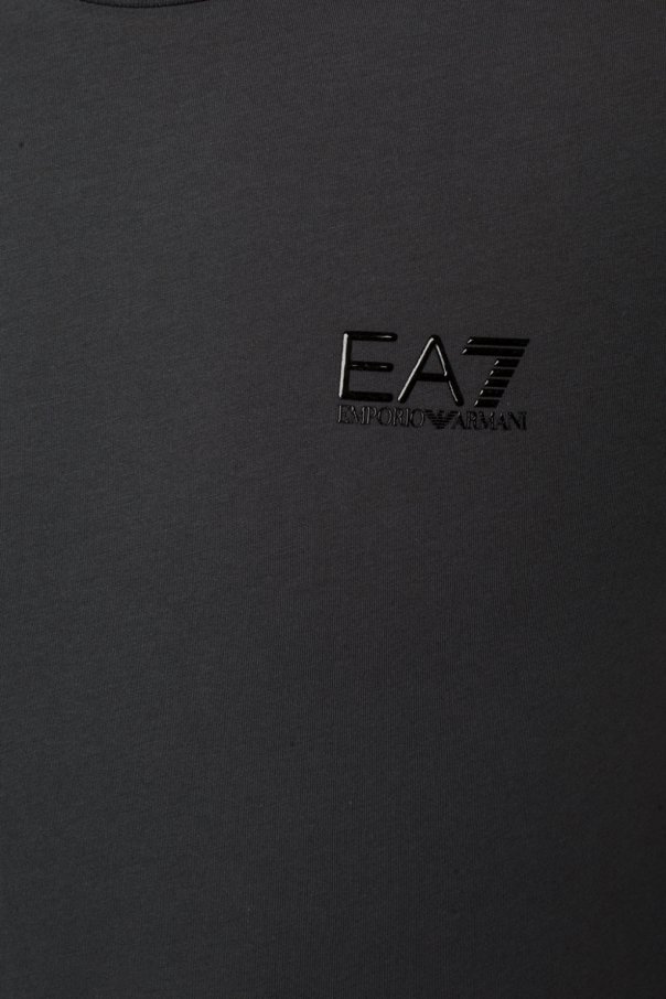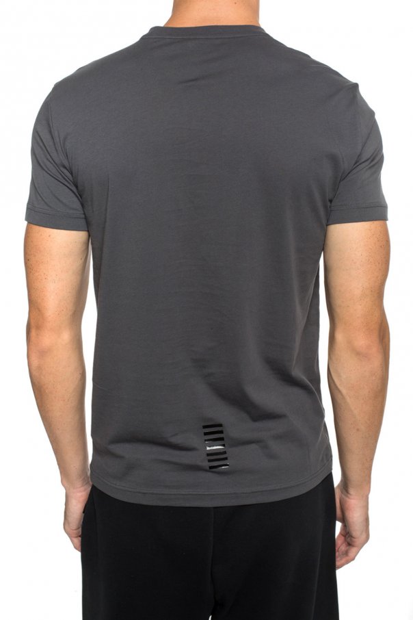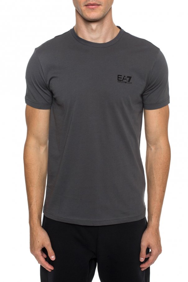 Grey crewneck T-shirt from EA7 Emporio Armani. Made of cotton. It features black EA7 logo printed on the front.