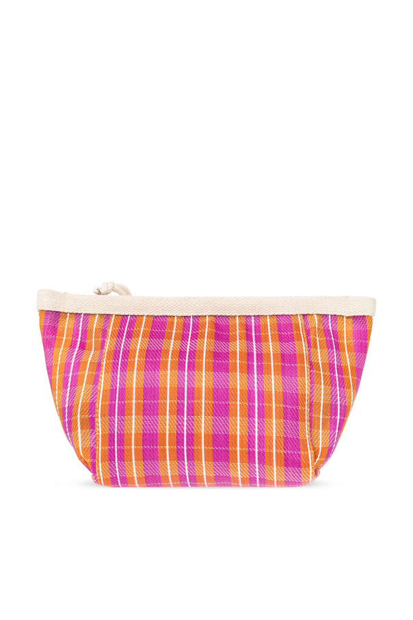 Orange, pink and beige wash bag from Isabel Marant. Fastened with a zip, this model features a black logo patch, one internal compartment and silver-tone metal hardware.