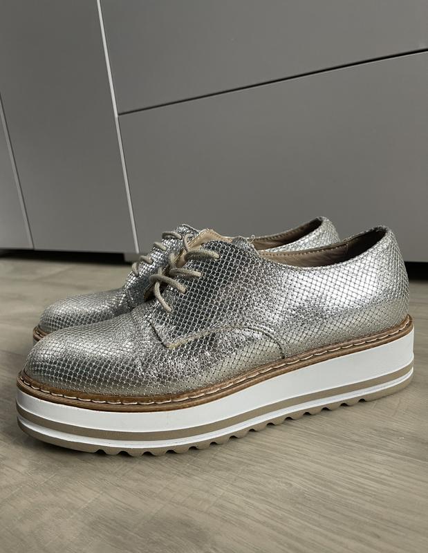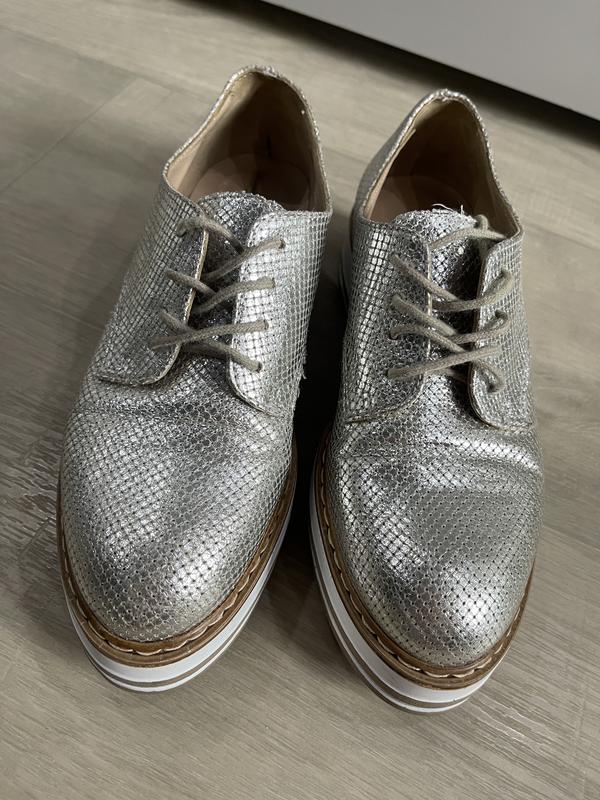 Блискучі жіночі шкіряні оксфорди, стан ідеальний з мінімальними слідами носки, розмір 36 устілка 23 см