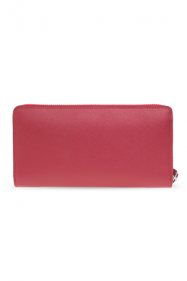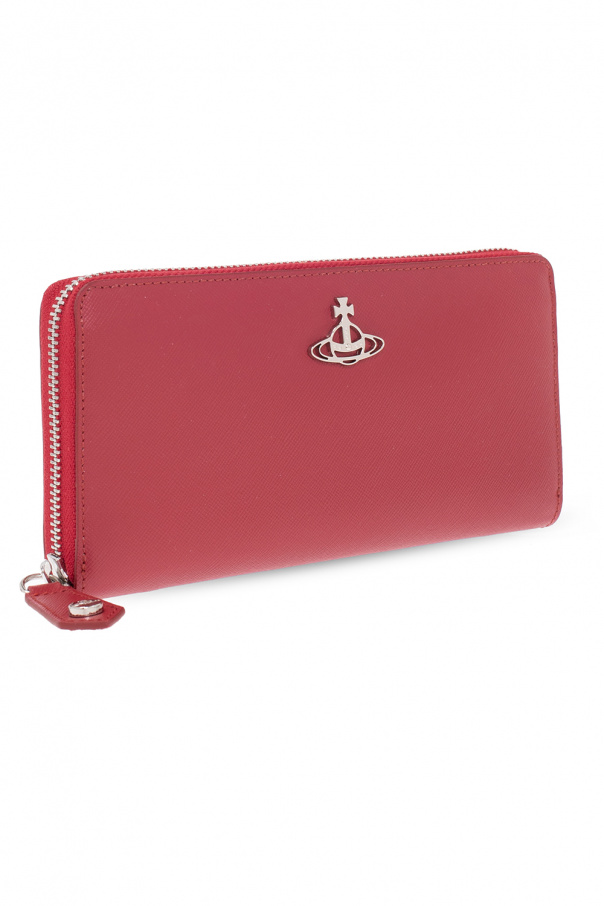Red ‘Debbie’ wallet from Vivienne Westwood. Crafted from calf leather, this design features a zip-around fastening, silver-tone metal hardware, including a logo plaque on the front, and an interior with three bill compartments, one zip pocket and twelve card slots inside.