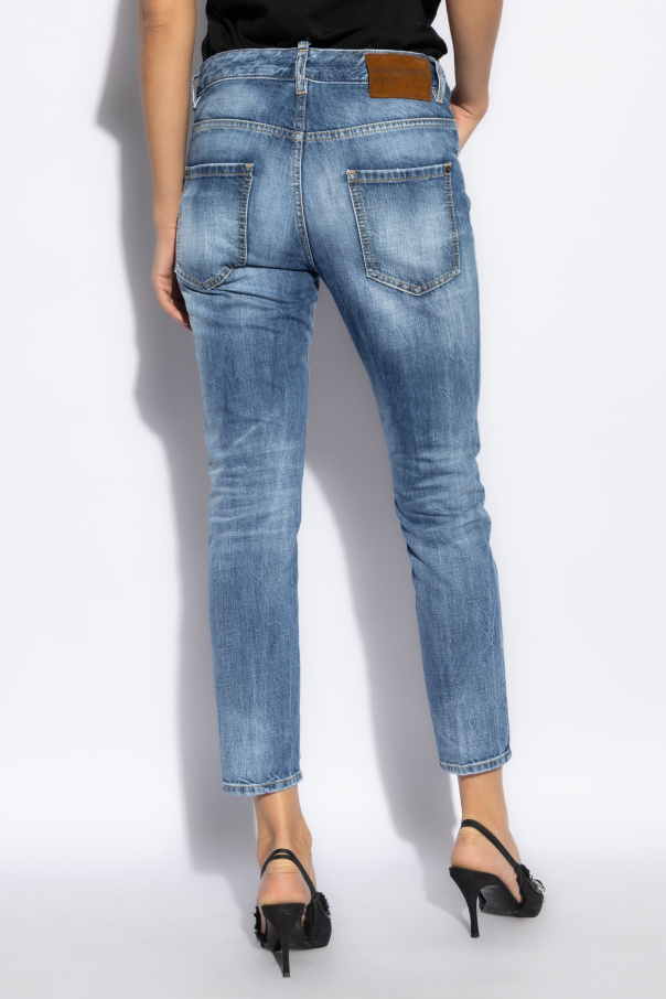 Introducing the ‘Cool Girl’ Jeans by Dsquared2, a testament to the timeless appeal of denim. Crafted from 100% cotton, these jeans merge comfort with chic, embodying a light blue hue that captures the essence of relaxed elegance. The straight or slim fit silhouette gracefully tapers towards the ankles, offering a flattering shape that complements the contours of your body. The fabric’s distressed appearance and varied color texture bestow an air of lived-in sophistication, while the meticulous details set these jeans apart. Metal buttons and rivets gleam against the denim, highlighted by contrasting yellow stitches that frame the jeans’ structure with precision. A petite coin pocket, adorned with a distinctive red flag, alongside a metal button emblazoned with the logo, serve as subtle yet striking brand identifiers. The jeans’ reverse features a leather patch with the Dsquared2 logo, a nod to the brand’s heritage and commitment to quality. Why Purchase the ‘Cool Girl’ Jeans? Flawlessly crafted from 100% cotton for all-day comfort. Elegant light blue hue with a distinctive distressed texture. Slim fit design that subtly flares at the ankles for a modern silhouette. Exquisite details such as metal hardware, contrasting stitches, and a leather logo patch elevate the overall aesthetic. Equipped with five practical pockets, including a special coin pocket with a red flag accent.