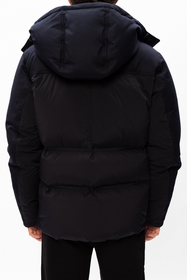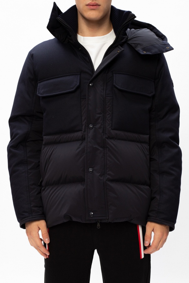Navy ‘Wilfrid’ quilted hooded down jacket from Moncler. Crafted from wool, this item features snap and zip fastenings, a black logo patch, two zip pockets, two flap pocket with snaps, a drawstring hood and zip details on the sides.