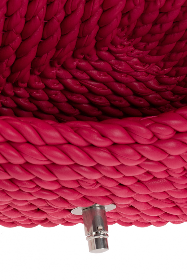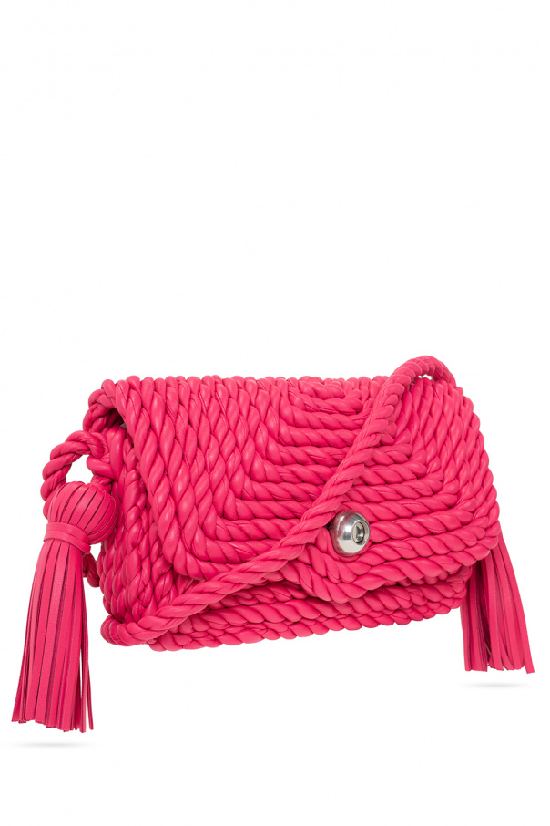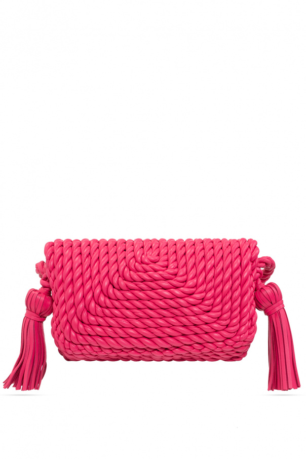 Pink ‘Classic Small’ torchon shoulder bag from Bottega Veneta. Made of lamb leather, this design features a snap fastening, a shoulder strap, decorative tassels on the sides, silver-tone metal hardware and one internal compartment.