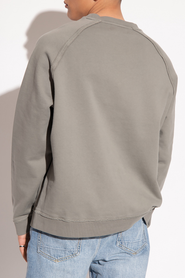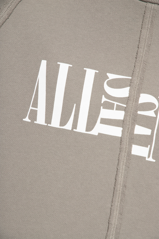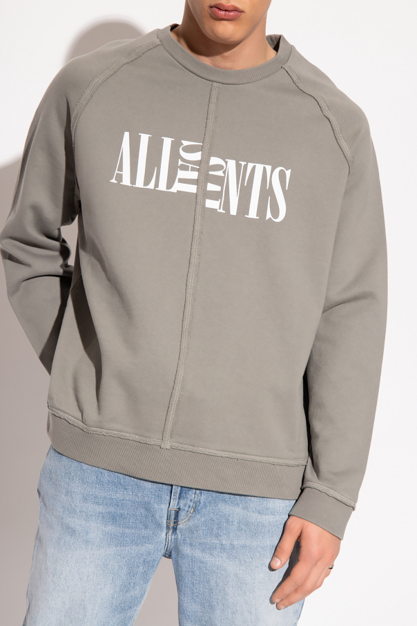 Grey ‘Nico’ crewneck sweatshirt from AllSaints. Made of cotton, this garment features a white logo print, decorative stitching details and ribbed trims at the hem and cuffs.