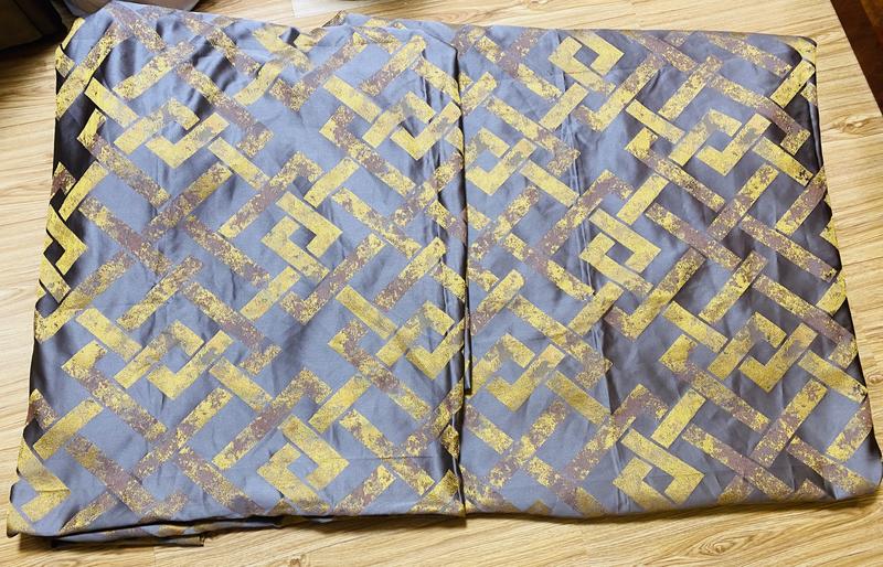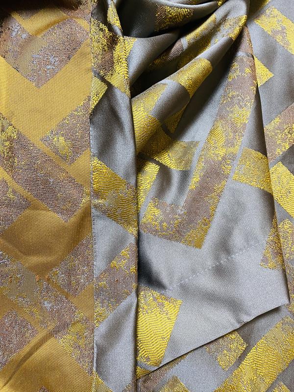 Продам шторы из дорогой ткани блэкаут Сама ткань цвет шоколад сверху геометрические нашивы горчичного цвета. В наличии две шторы висти 2,70 м и ширина каждой шторы 1,80 м Шторы пошиты на широкой тесьме Карандаш 11 см Ткань покупали в Италии 40 евро за метр. Цена указана за две шторы.