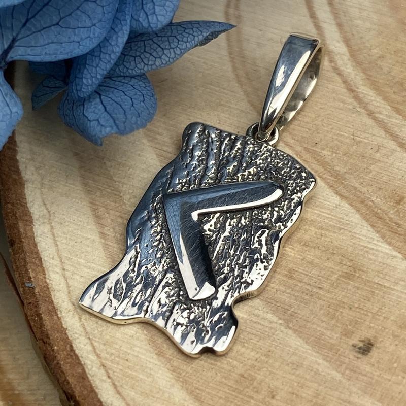 Серебряный кулон в виде руны Кеназ -- это символ внутреннего света, озарения и