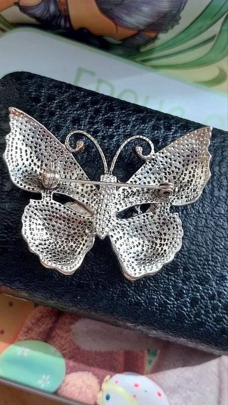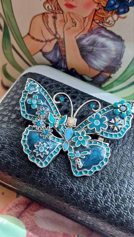 Металлический сплав серебряного цвета в сочетании с нежной эмалью глубоких изумрудных цветов и яркими стразами.